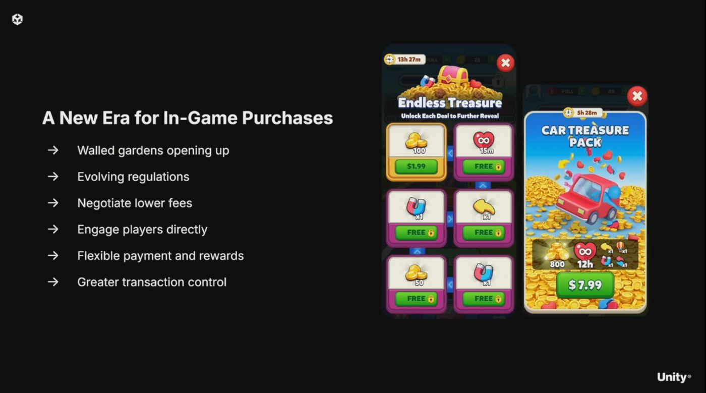 プラットフォームの壁が崩れ、D2C(Direct to Consumer)の機会が拡大。プラットフォーム税を回避し高マージンを実現可能に。決済プロバイダーとの交渉力向上、プレイヤー向け柔軟な決済オプションを提供。