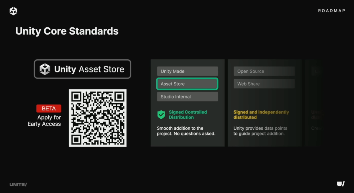2026年初頭からAsset StoreでUPM(Unity Package Manager)形式での配布を開始予定。これによりUnityが署名者を検証しPackage Managerにその情報を表示可能に。Asset StoreパブリッシャーはUPM形式の新機能(強力なバージョン管理、依存関係管理など)を活用できるようになる。