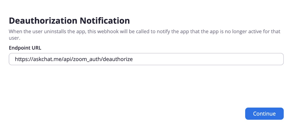 Informationに、EndpointURLという項目が合ったと思います。ユーザーがZoom Marketplace上からアプリを「Uninstall」した場合、こちらのEndpointURLにwebhookが送信されます。