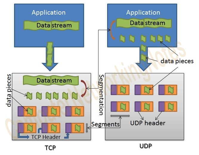 トランスポート層であるTCPは、アプリケーションから受け取ったメッセージ(データ)を分割(セグメンテーション)して、それぞれにTCPヘッダを付加します。