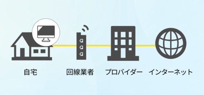 回線事業者はISP(プロバイダー)に回線を貸し出しており、この回線を使用してISP(プロバイダー)はインターネット接続のためのサービスを提供しています。