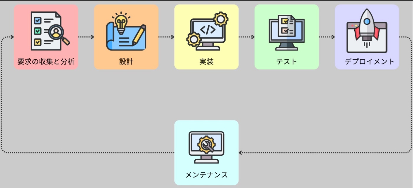 プロセスは段階に分けられ、各段階では、計画、設計、コーディング、テスト、機能的なソフトウェアの提供など、ソフトウェア開発の特定の側面に焦点を当てる。