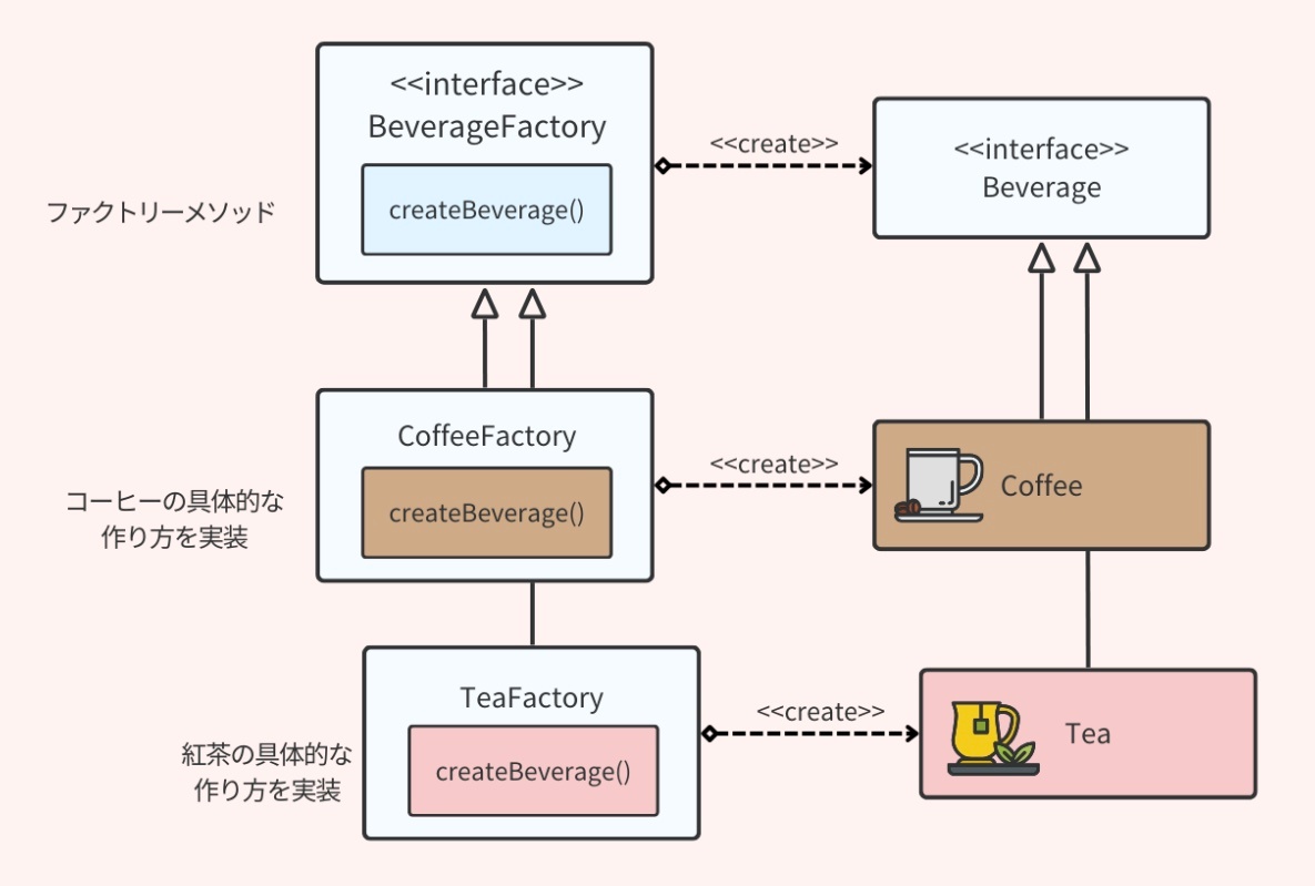 スーパークラスでアルゴリズムの骨格を定義し、サブクラスでそのアルゴリズムの特定のステップをカスタマイズできるようにするもの。これにより、アルゴリズムの構造自体は変更せずに、その一部を変更・拡張できる。