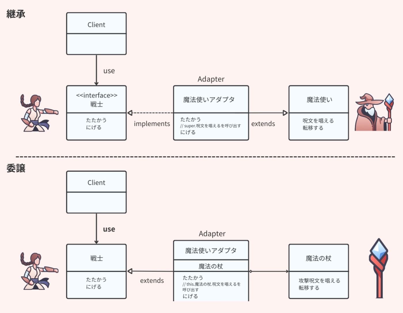 比較項目 | 継承(Inheritance) | 移譲(Delegation) |