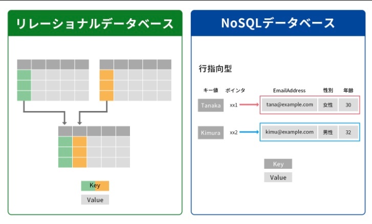 | 用途の例 | セッション、キャッシュ等 | ユーザー情報、ログ等 |