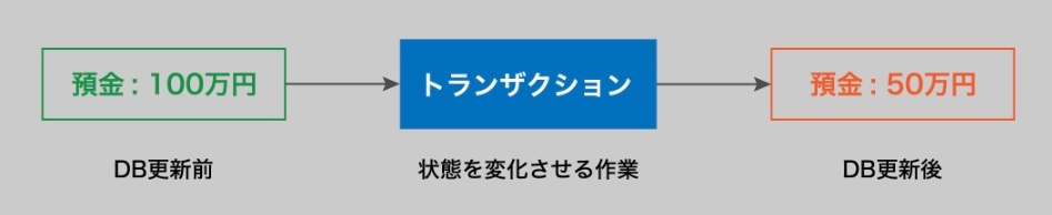 トランザクション(transaction)とは、データエントリの更新など、状態の変化を表すデータベースシステム内の作業単位のことを指す。