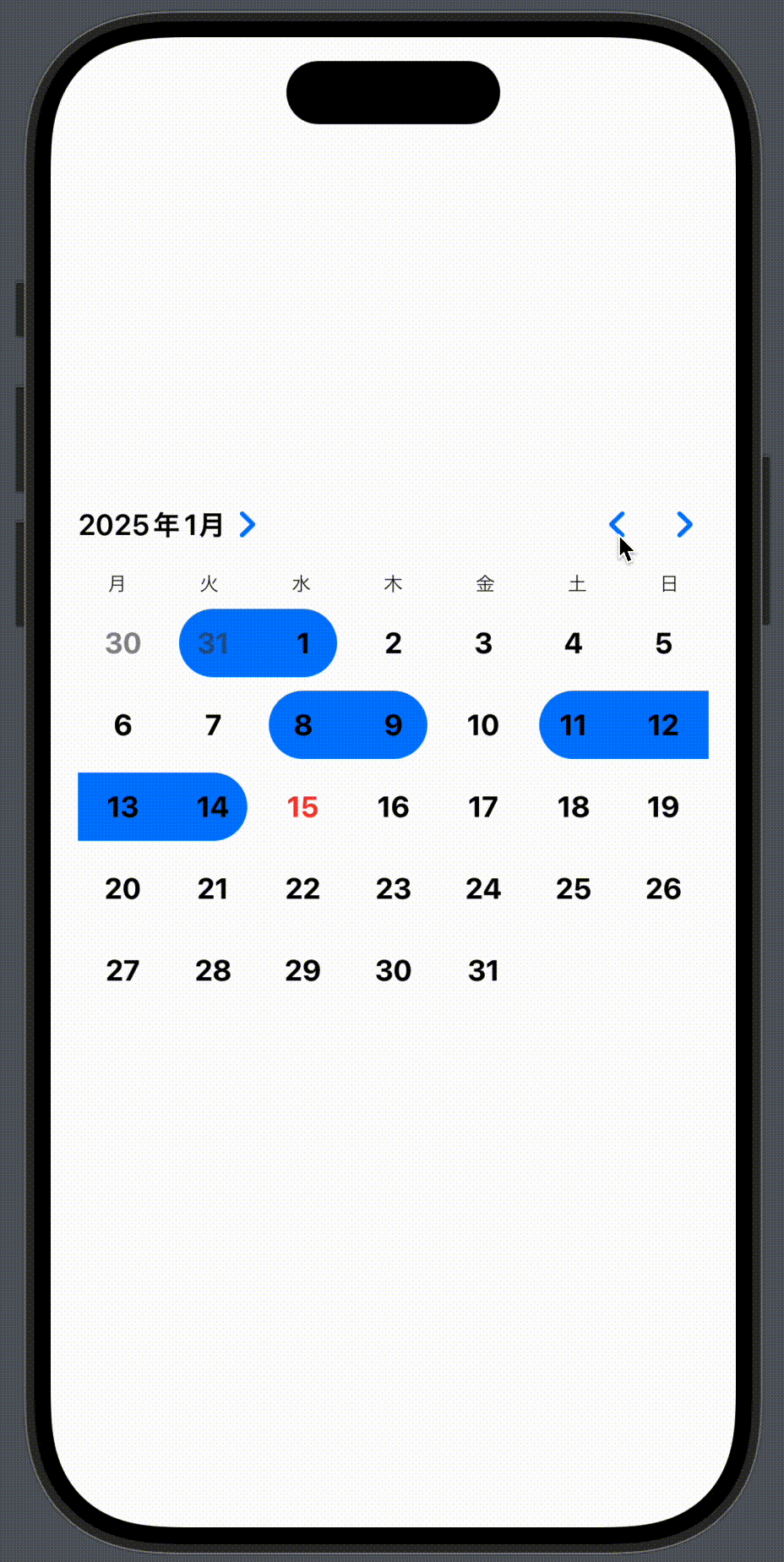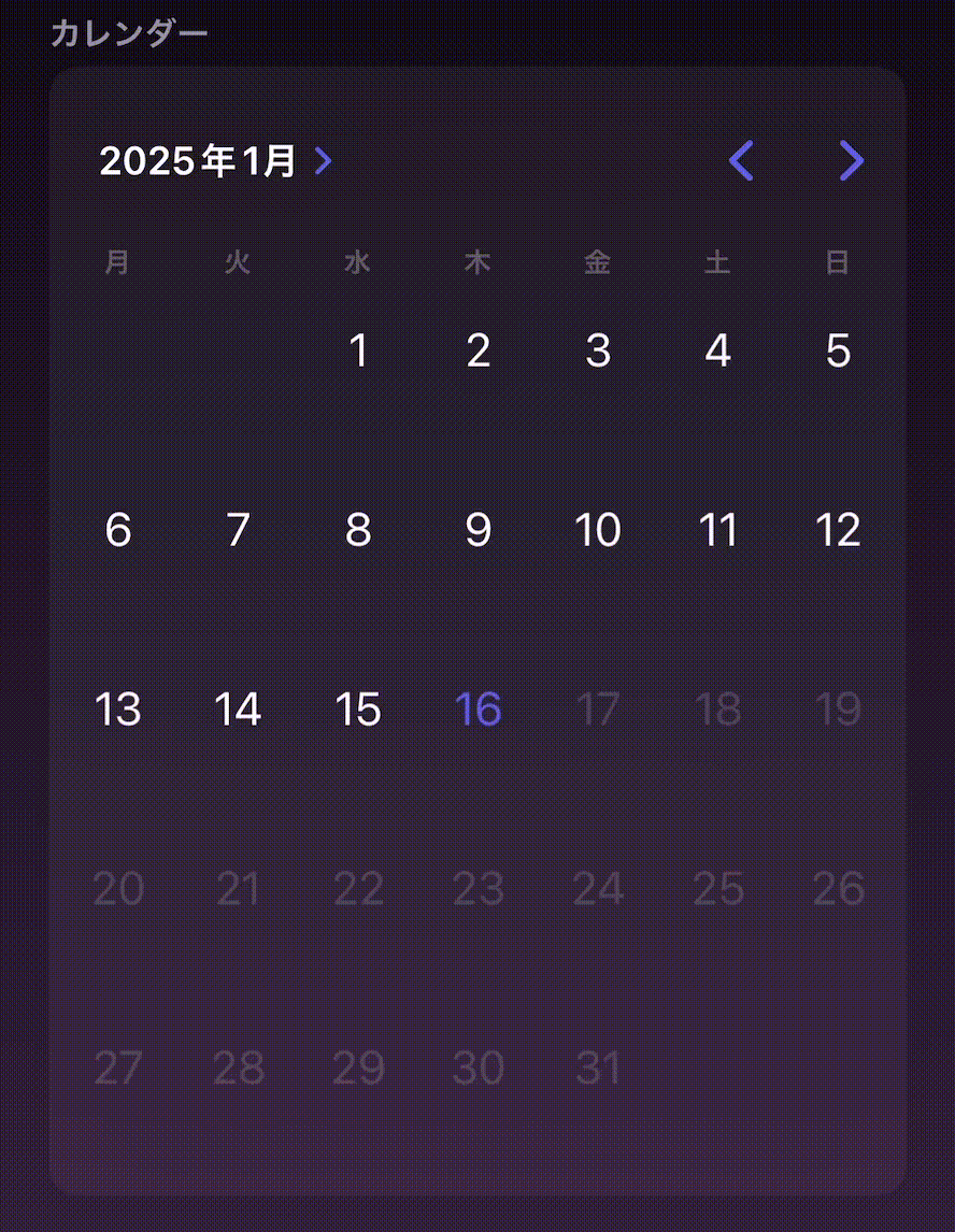 最近追加されたiOSの純正アプリを触ってると、いい感じのカレンダーがあったんですが、標準で用意されていないようなので再現を試みました。