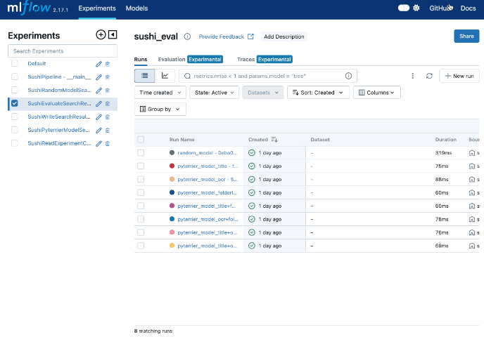 - 包括的な実験管理:MLflowを通じて、実験のパラメータ、結果などを一元管理。