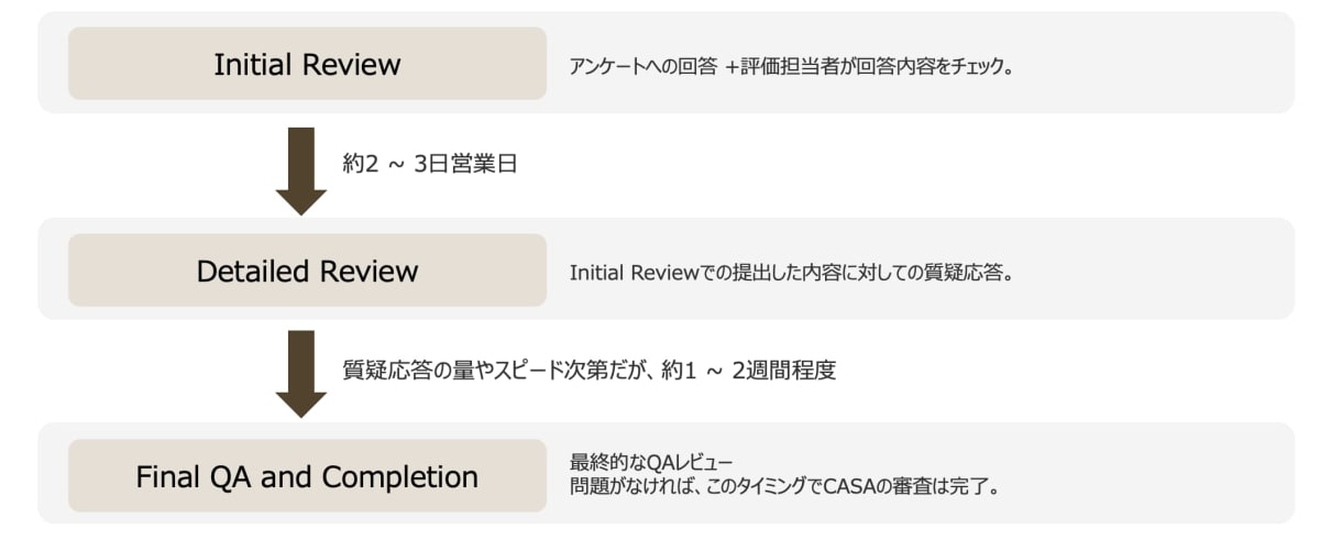 Initial Reviewで提出したアンケートの情報の不備などを確認されるくらいのイメージです。