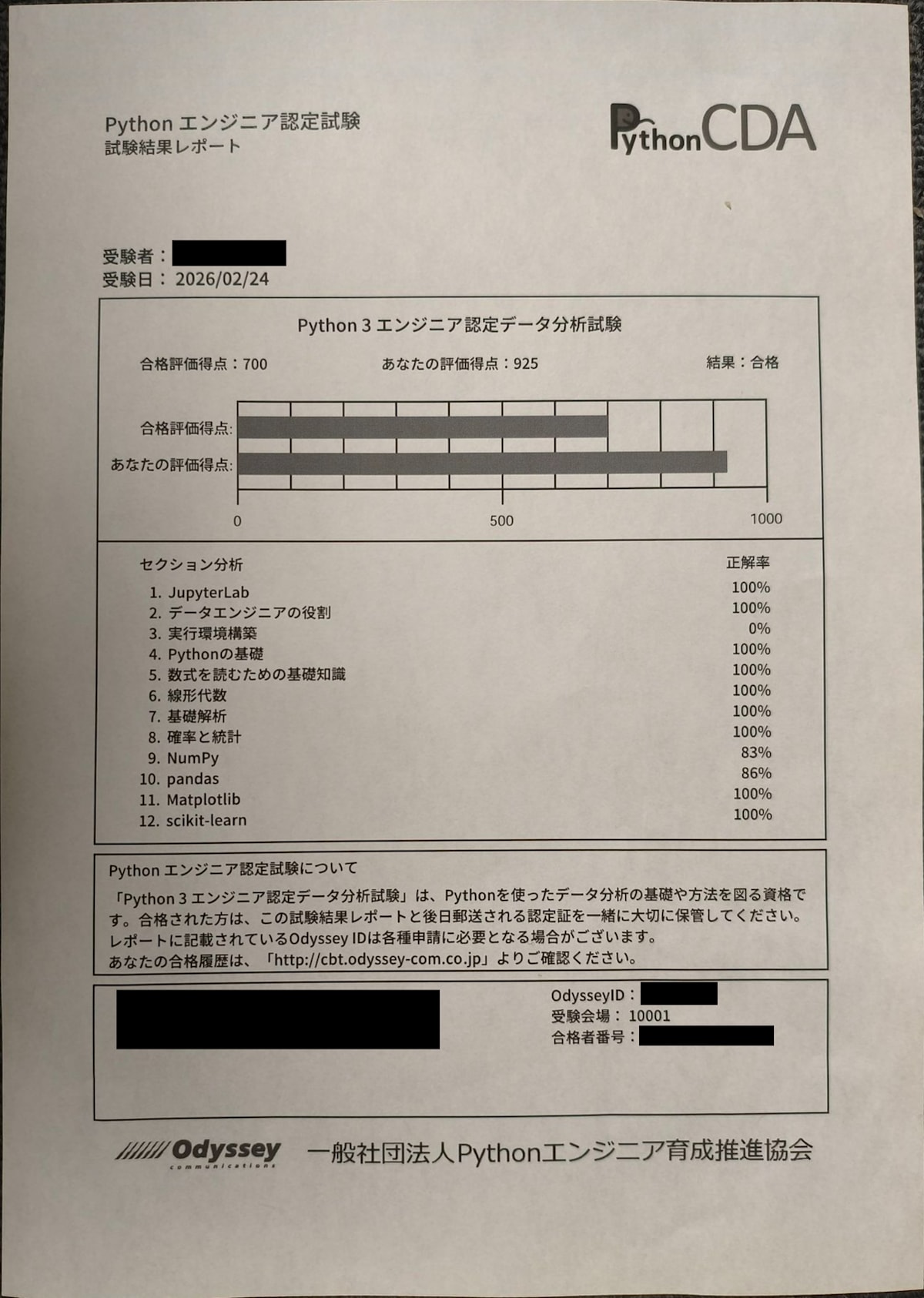 Python 3 エンジニア認定データ分析試験合格しました。期間は17日間で、総勉強時間は41.5時間でした。