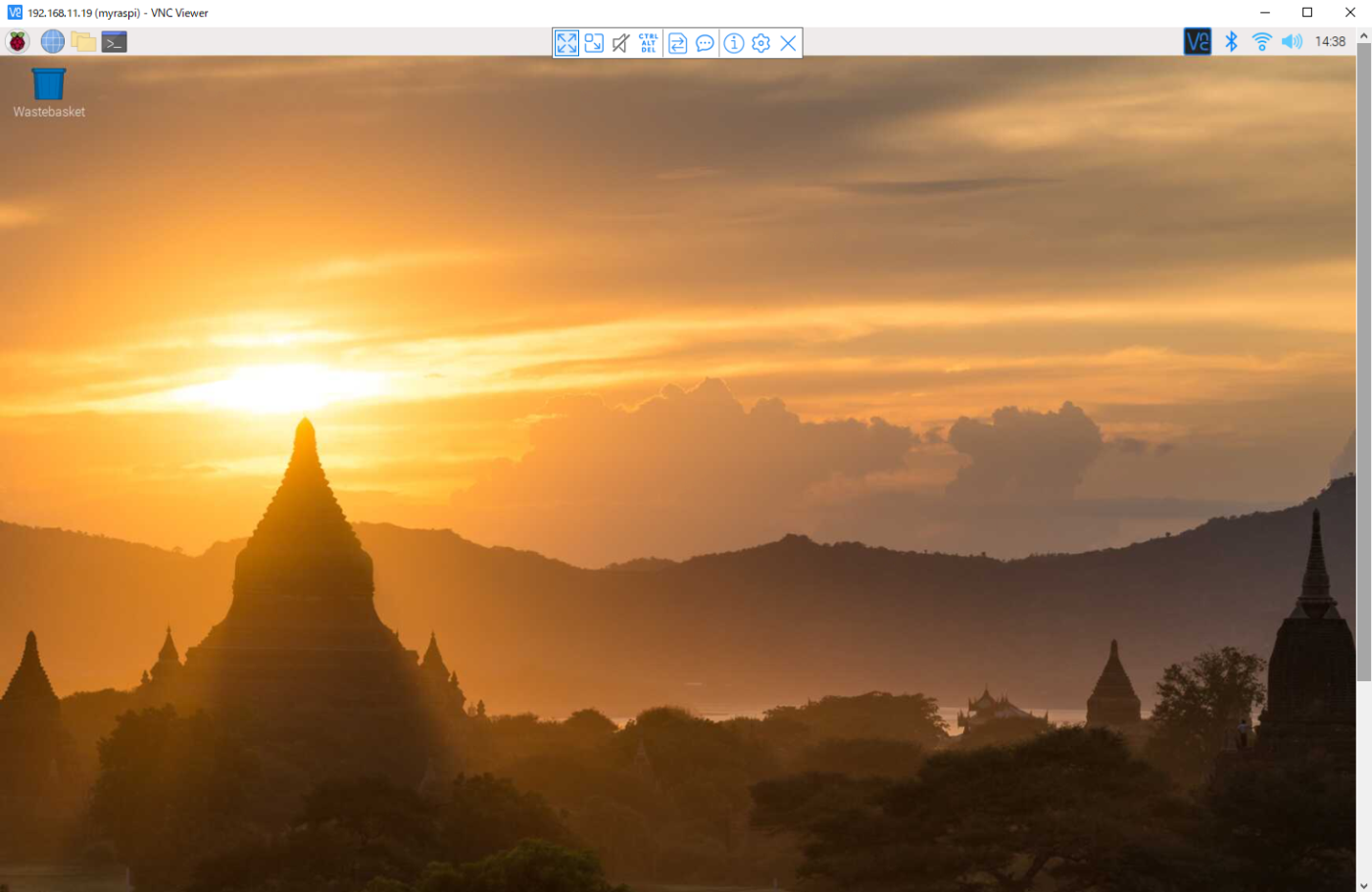 ラズパイの右上バーにVCNのロゴが表示されている。