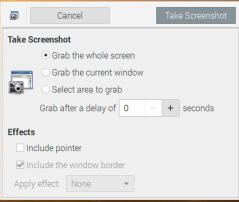 左上メニュー > アクセサリー > Screenshot で、スクリーンショットのウィンドウが現れる。「スクリーンショットの取得」をクリックして取得する。