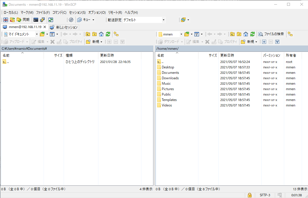 パスワードが求められるので、ラズパイに設定したパスワードを入力。