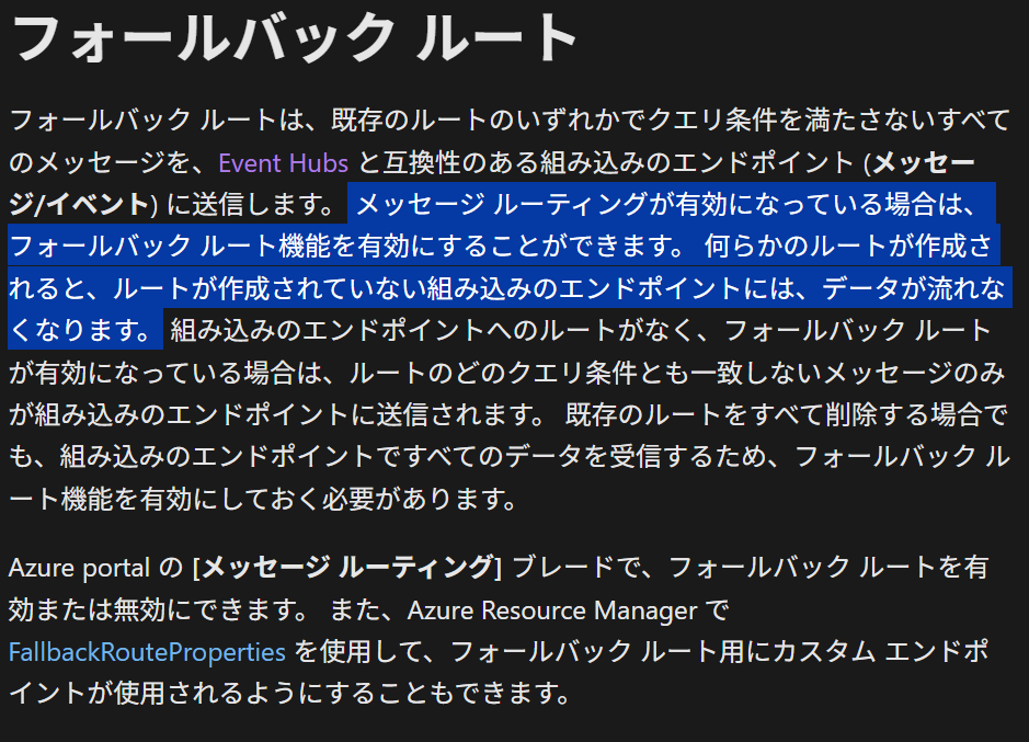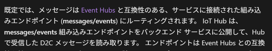 既定では、メッセージは Event Hubs と互換性のある、サービスに接続された組み込みエンドポイント (messages/events) にルーティングされます。