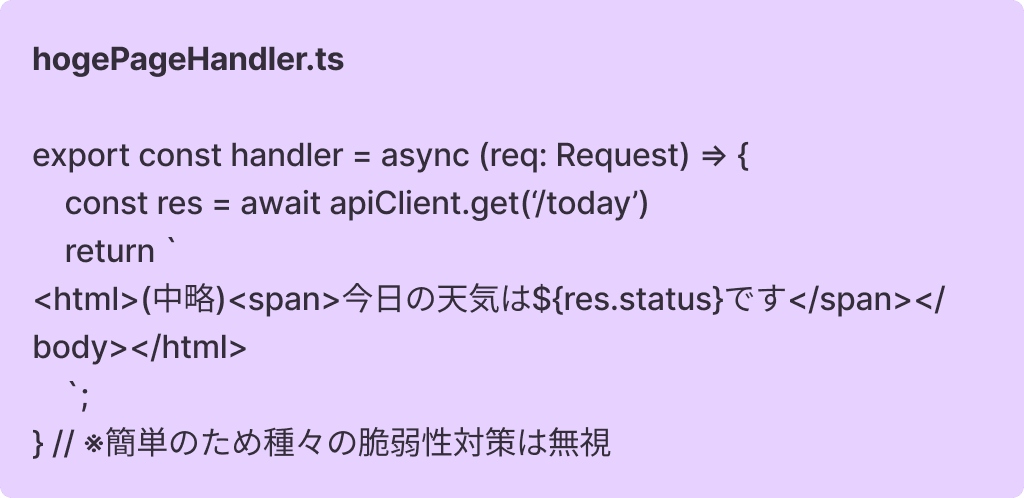一応前節では「SSRとページ遷移時でそれぞれ通信処理とHTML組み立て処理を書くのは面倒すぎる」という書き方で済ませたのですが、個人的にもっと辛い理由があります。