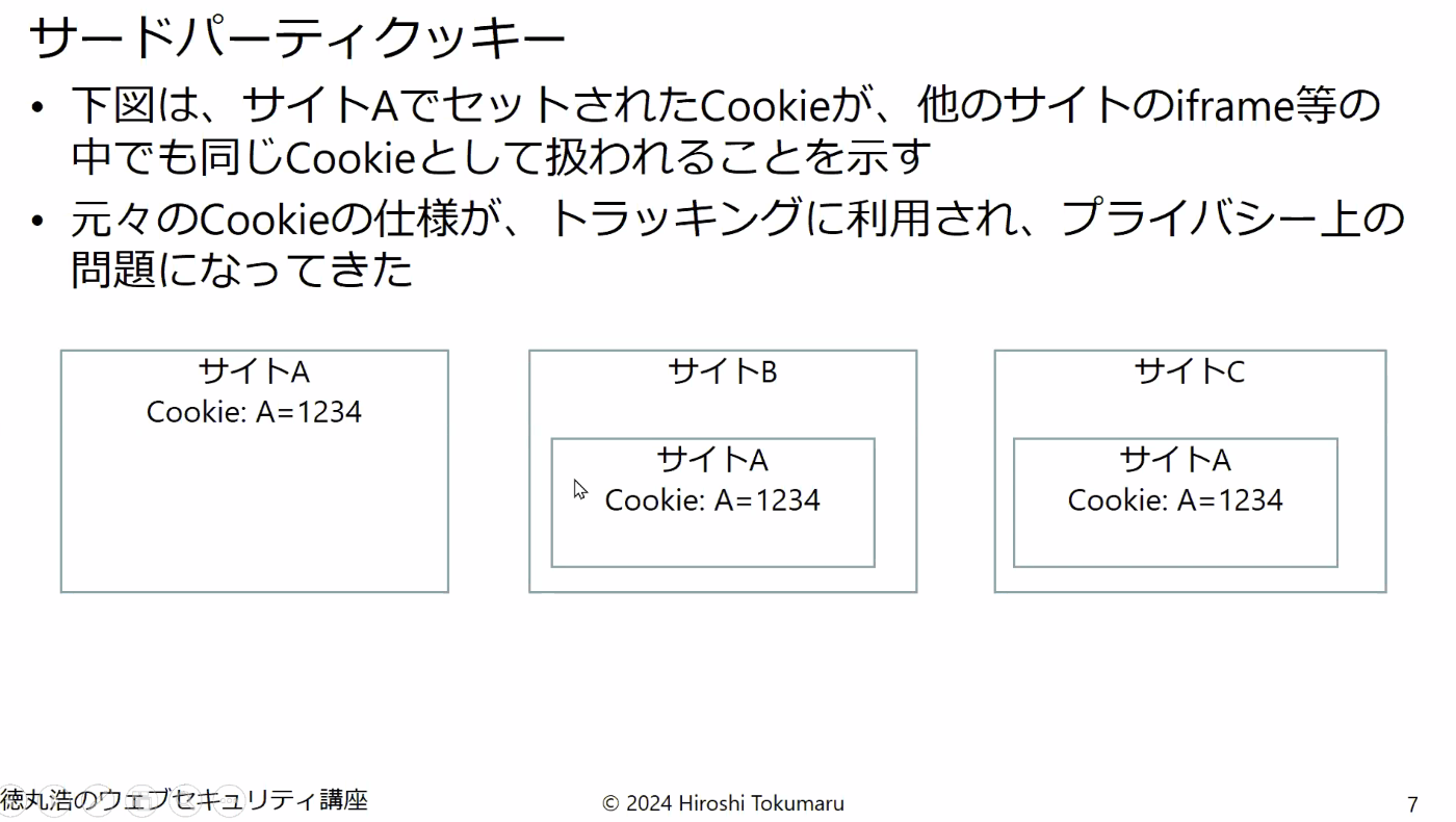 - XSSは、SameSite, 同じOriginからの通信なので、XSS用の独自対応を実施する必要があります。