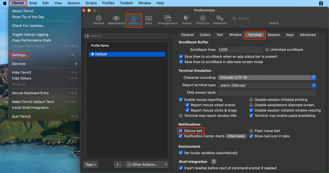 🔕Mac の iTerm2 で ポッ/ポン というベル音を消す方法2024/02/20に公開macOSmacOSterminalSoundiTerm2tech 設定方法 iTerm2 > Settings > Profiles > Terminal > Silence Bell Discussion
