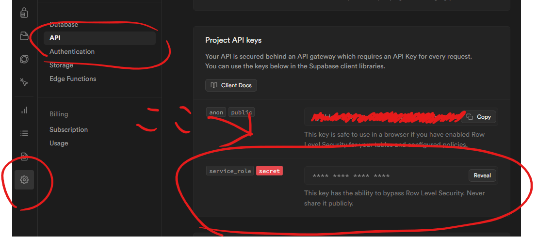 ユーザー削除の際には「SERVICE_ROLE」というものが必要になります。