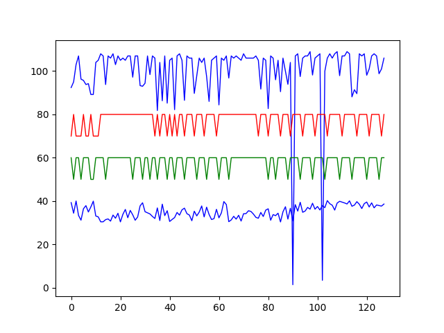 (上からスループット、Short_GI_20のon/off、Short_GI_40のon/off、Maximum_A_MSDU_lengthの値です。スケールはバラバラです)