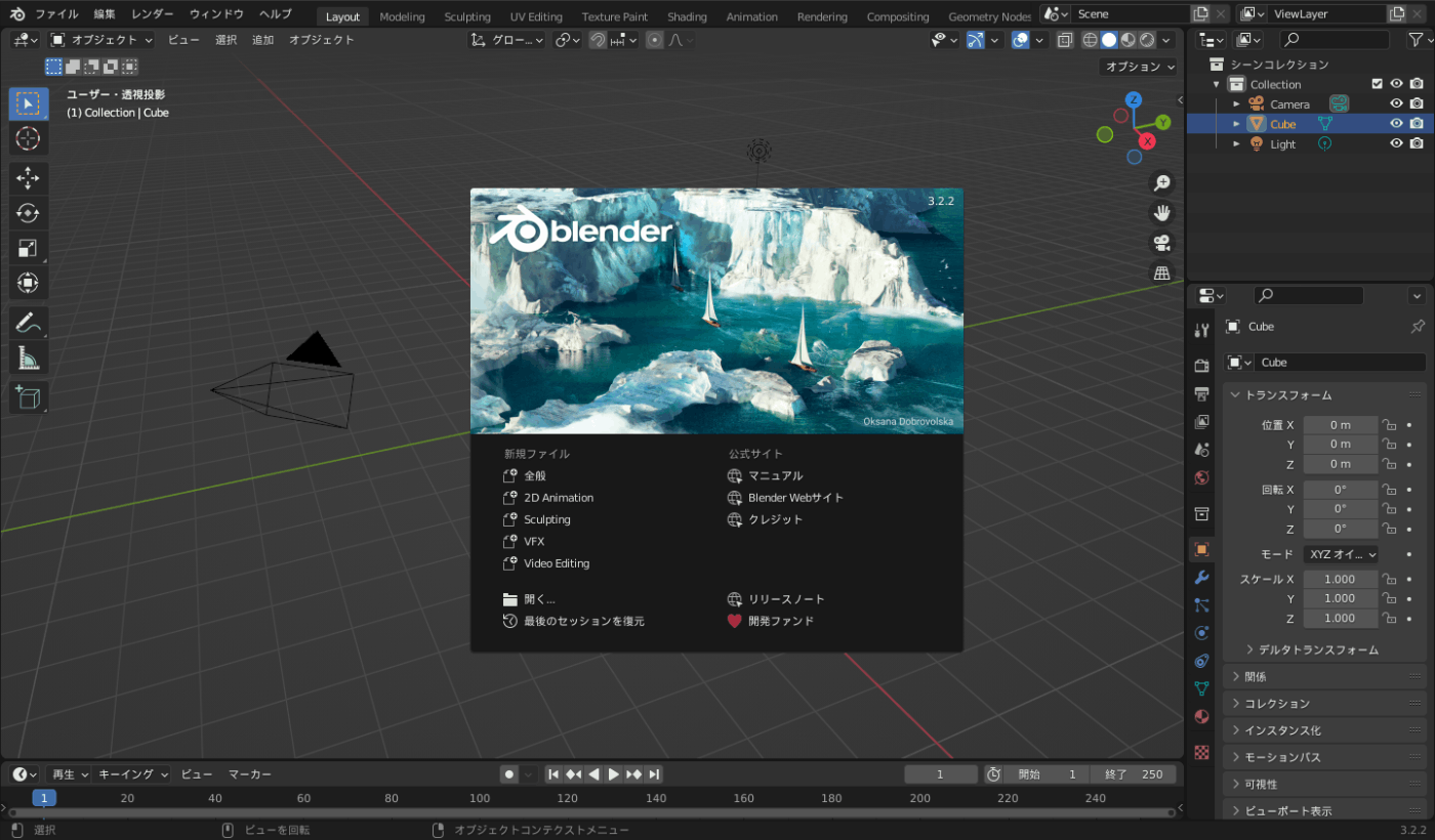 Ubuntu studio20.04.4でblender3.2.2起動できました