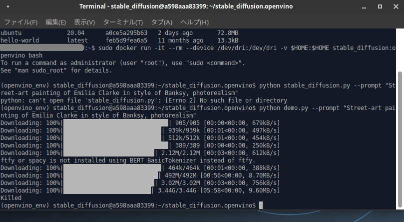 stable_diffusion.openvinoをubuntuで実行して"Killed"
