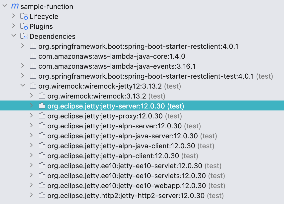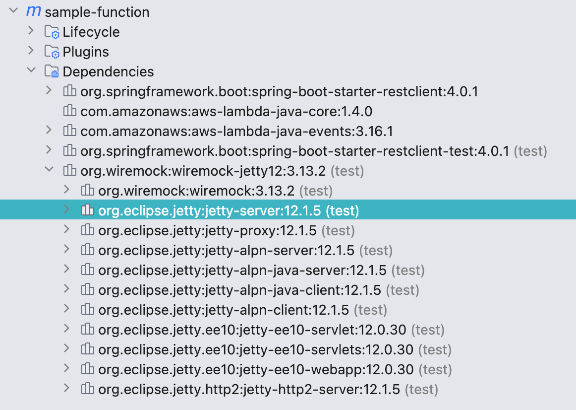 Maven Central Repositoryを確認したところ、wiremock-jetty12 3.13.2はJetty 12.0.30に依存している。