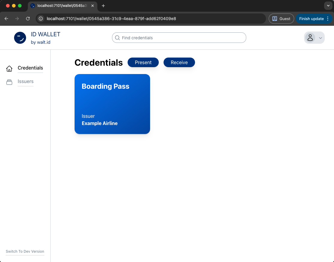 またこの記事では独自のVCスキーマは扱わず、すでに定義されているスキーマ BoardingPass(https://credentials.walt.id/w3c-credentials/boardingpass またはローカルの http://localhost:7103/credentials/boardingpass でVC形式を確認可能)を使用します。