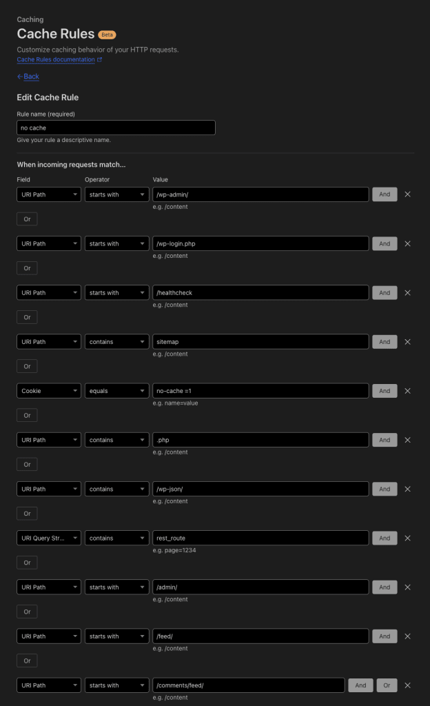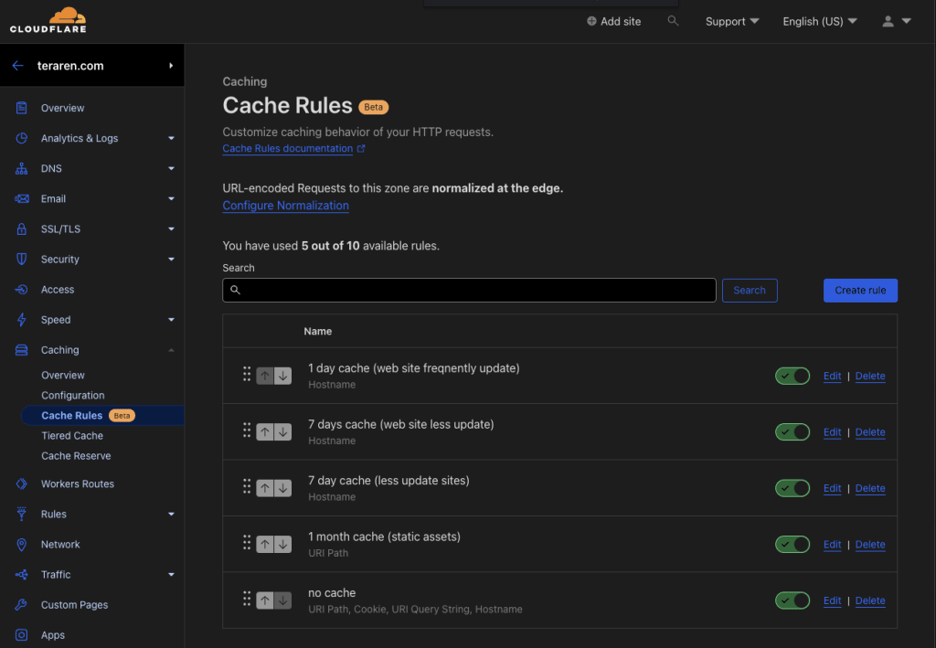 無料だと 10 個までしかルールセットを作れません。私はキャッシュの期間ごとにルールセットを作っています。