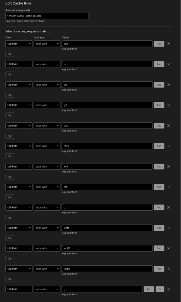 逆に 1 ヶ月の長期間を設定している設定はこちらになります。主に画像などの静的アセットになります。昨今は CDN を考慮したアセットの構築が行われているので内容が変われば URL も変わるという前提のためです。