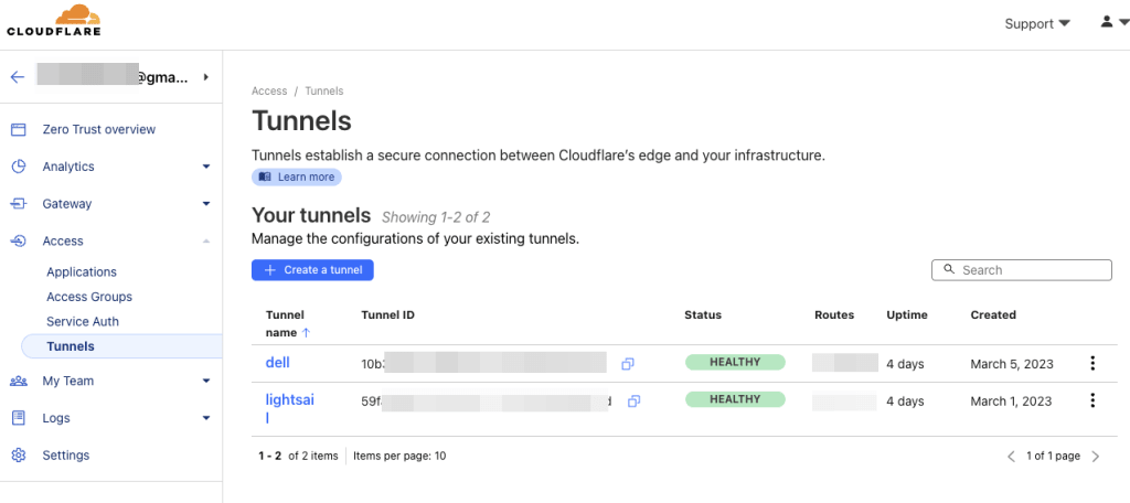 tunnel を使うためには Cloudflare 上の Zero Trust の管理画面で設定します。