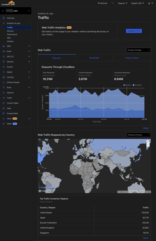 リバースプロキシと CDN を使いだすと以下のような統計情報が表示されてきます。眺めているだけでも楽しいです。