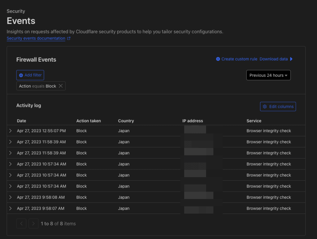 24 時間以内に 10 件くらいがブロックされてしまっていました。