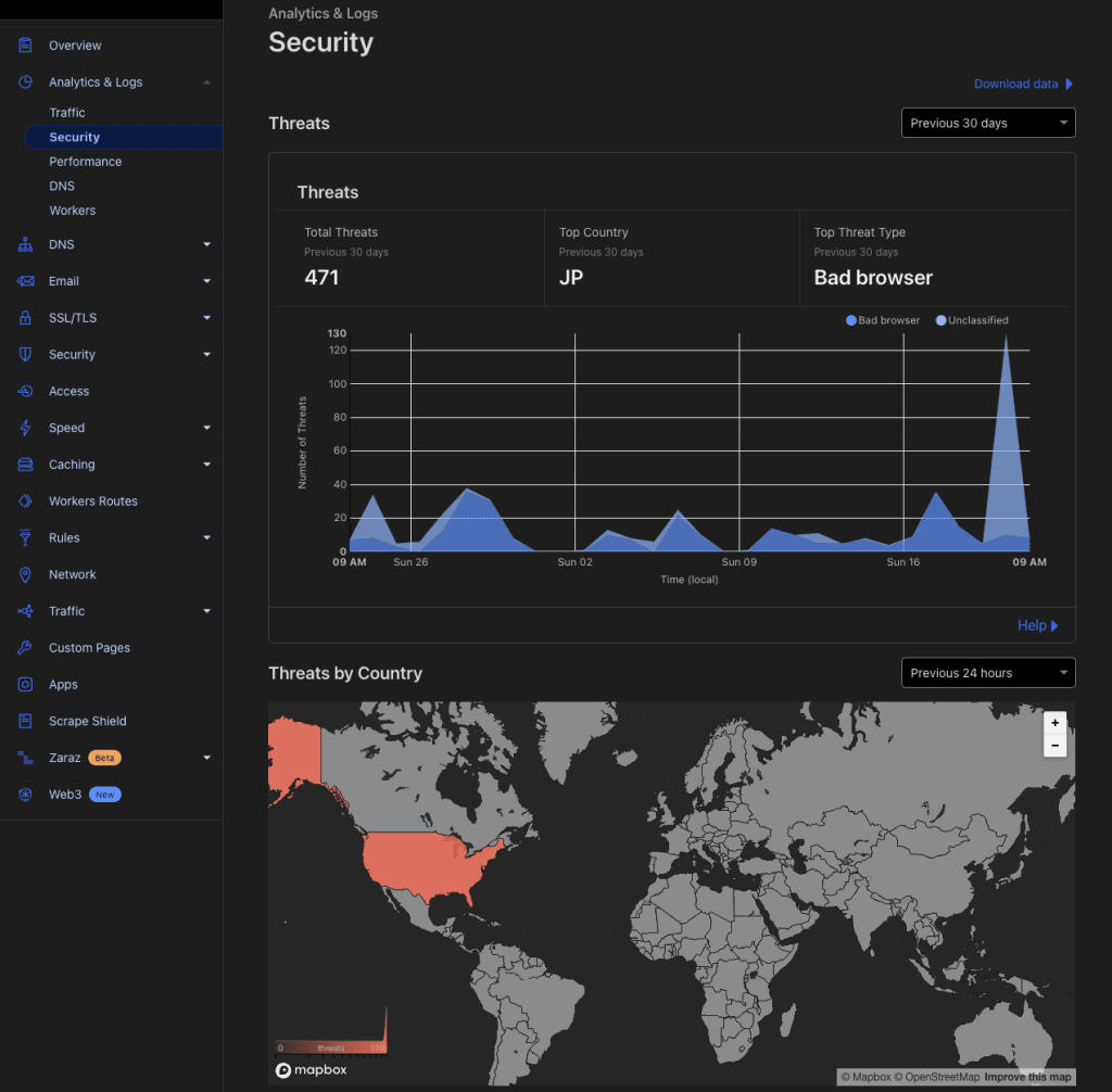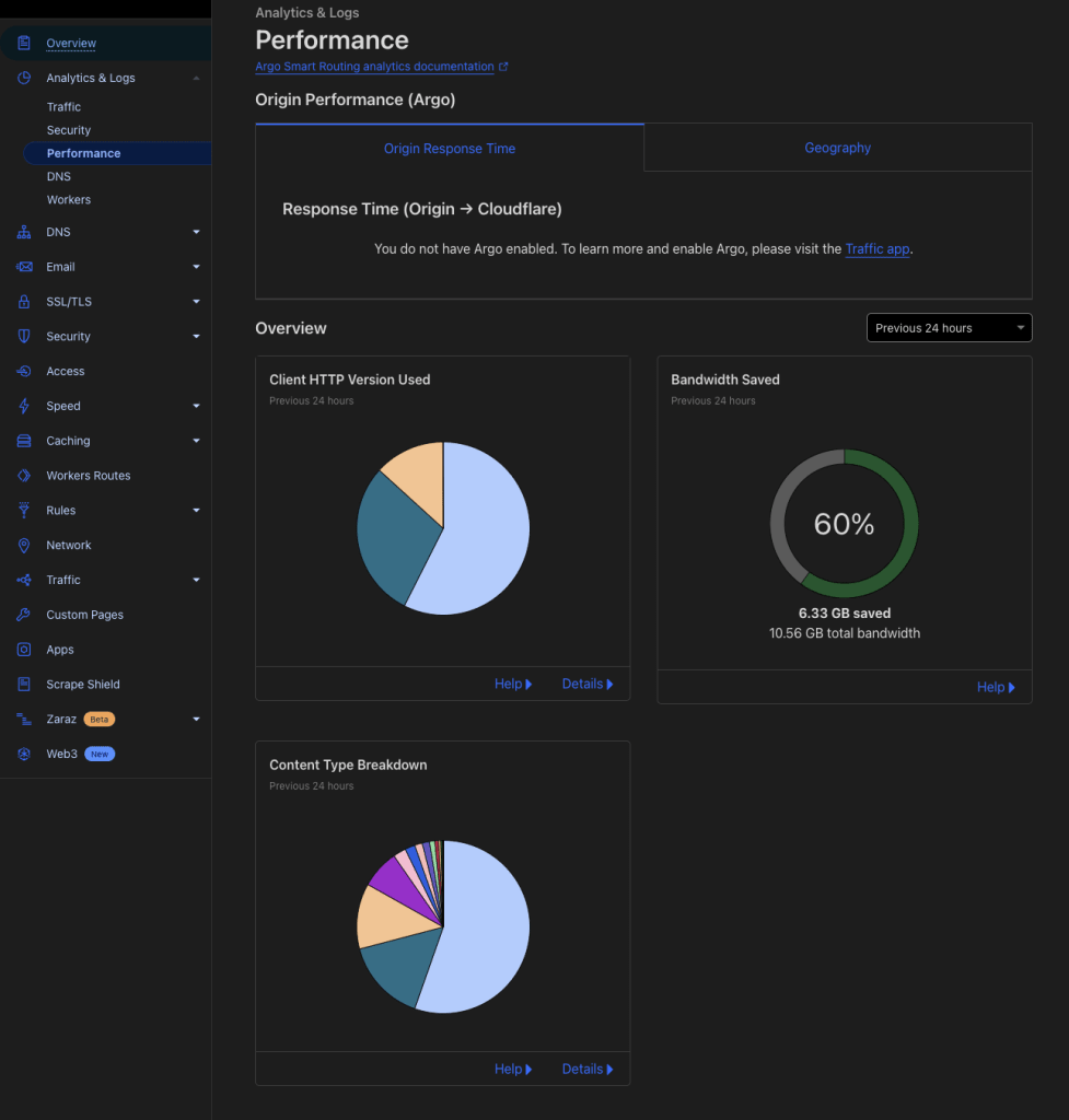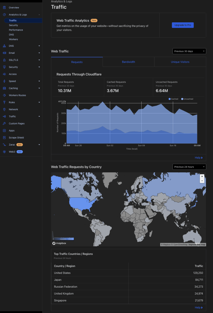 リバースプロキシと CDN を使いだすと以下のような統計情報が表示されてきます。眺めているだけでも楽しいです。