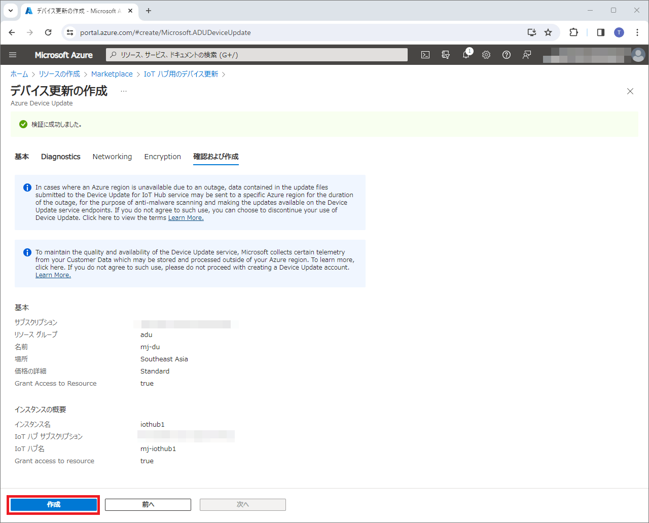 2-2. Azure Device Update for IoT Hubを作成