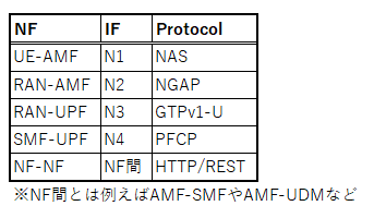 上記の構成図より各NF間の通信プロトコルについてまとめる。