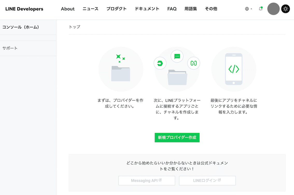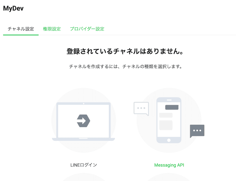 - LINE Developers にログイン(個人 LINE アカウントでのログインですぐ作成できました)