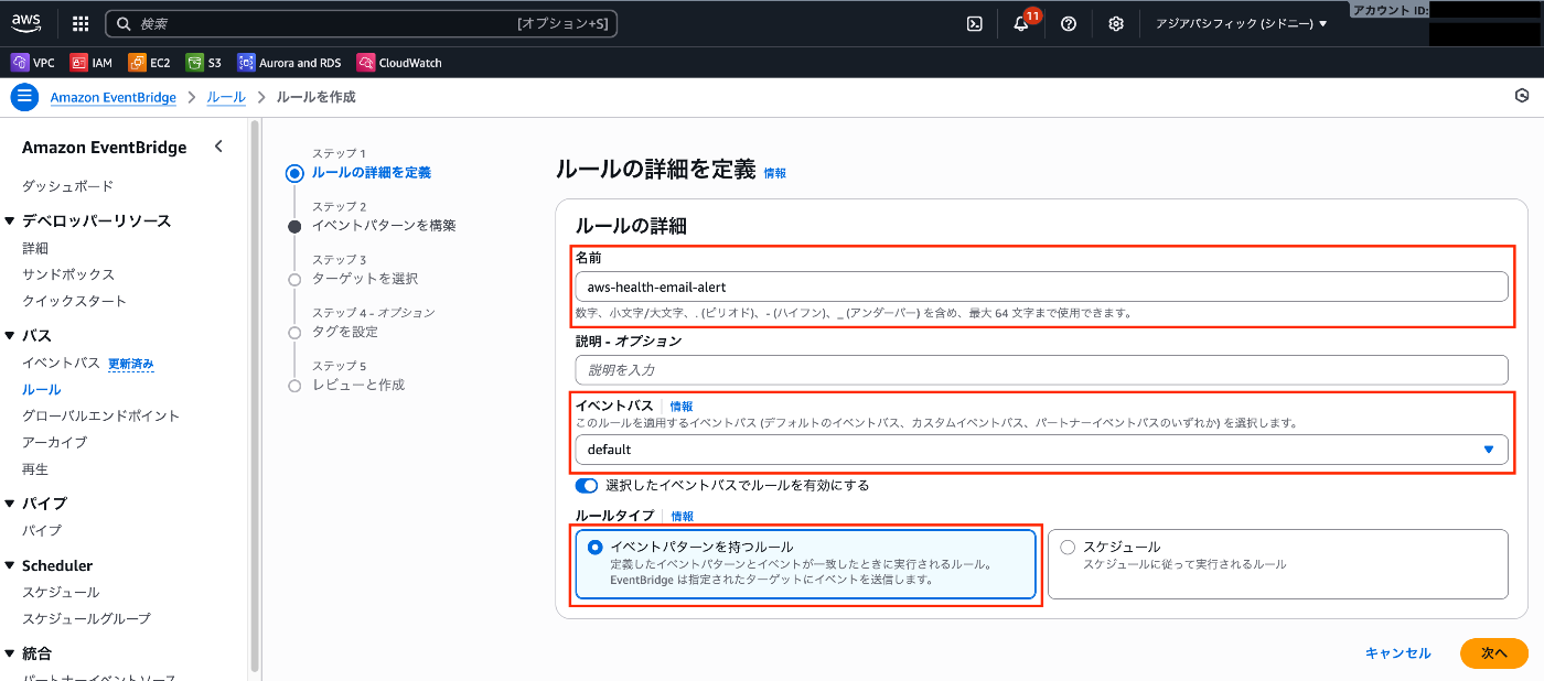 【ビジュアルルールビルダー対応版】EventBridge を利用した AWS Health Event のメール通知