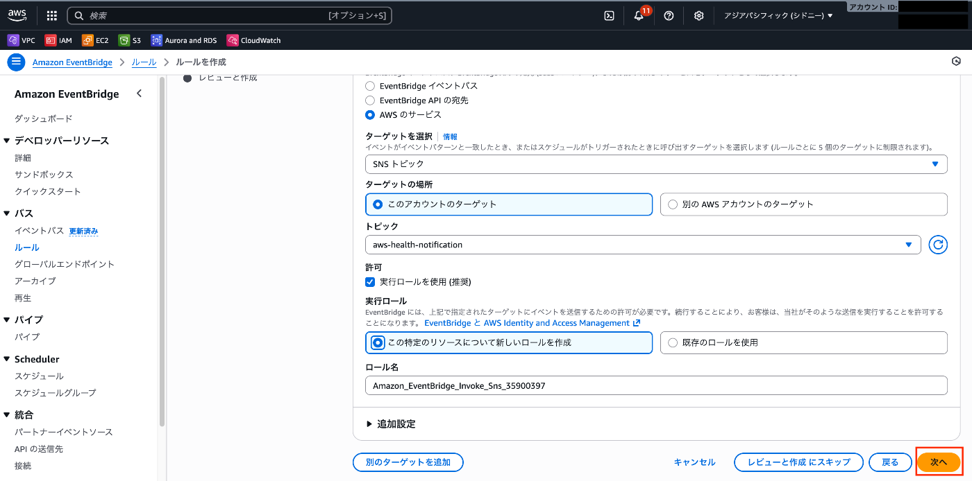 - 以降の手順は「EventBridge ルールを作成する」と同様です。