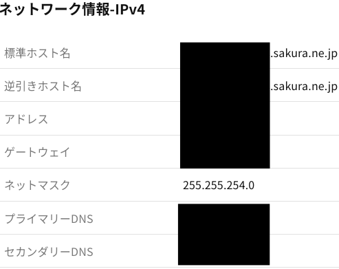 まず、ネットワークの項目を確認します。固定IP用の設定情報が書かれています。