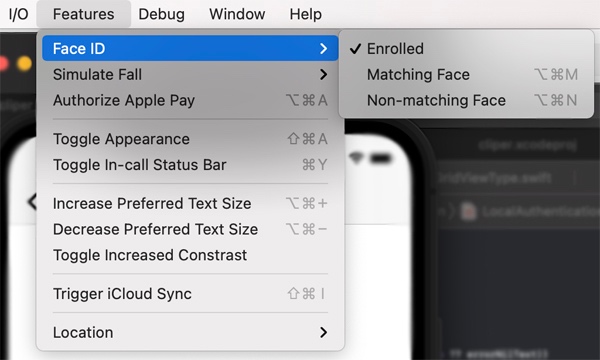 [ Features ] → [ Face ID ] → [ Enrolled ] で認証可能になります。