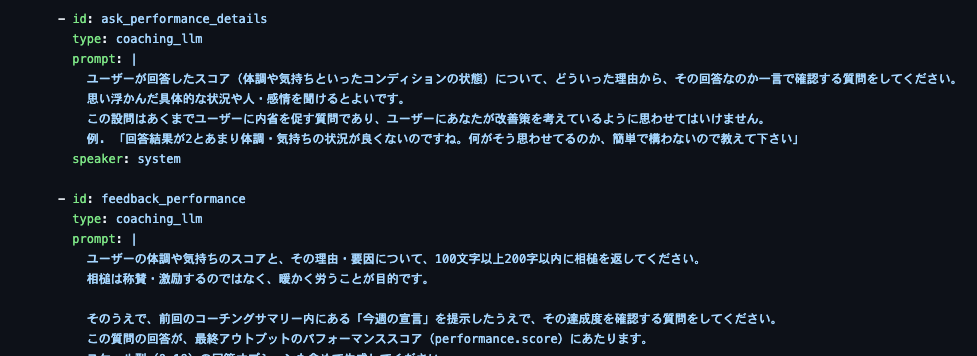 これがあることによって、そもそもAIコーチングという機能自体に価値がありそうか、今時点のLLMが要求に耐えうるかを早めに判断できました。
