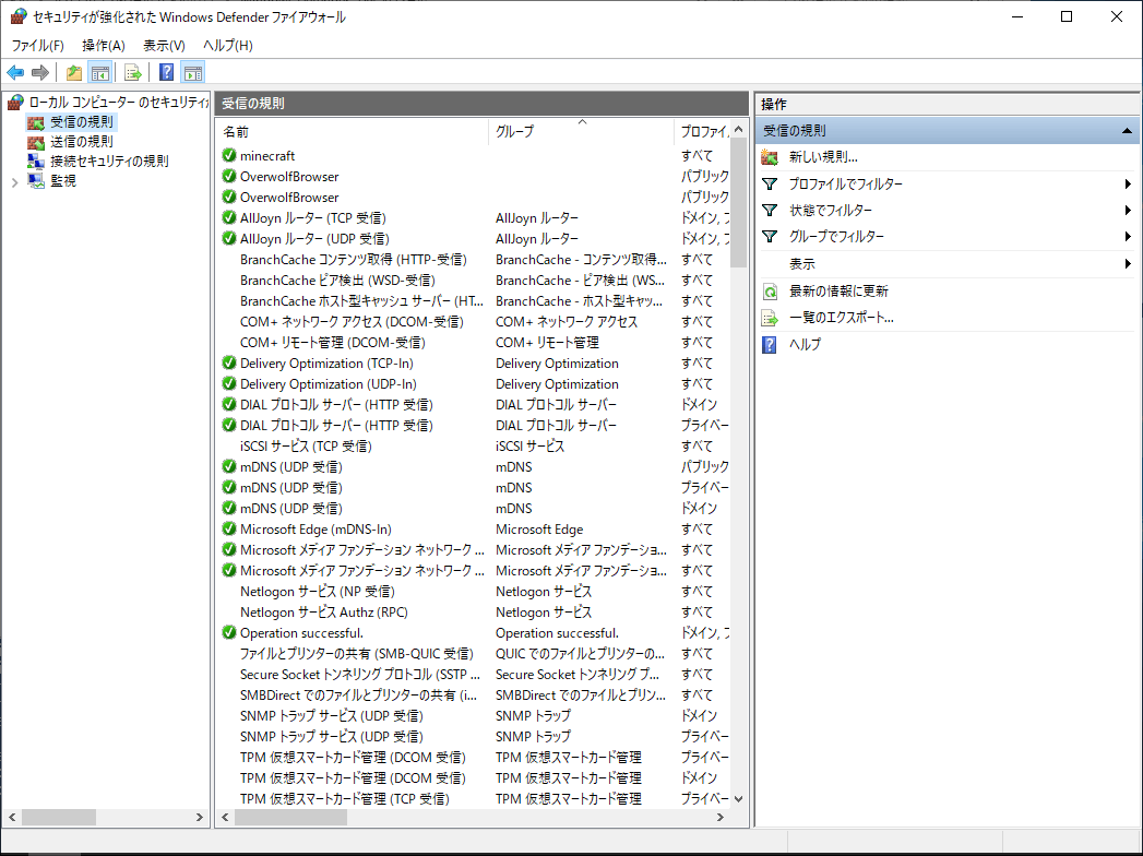 セキュリティが強化されたWindows Defender ファイアウォールで設定していきます。