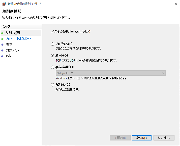 ステップ:規則の種類:ポート