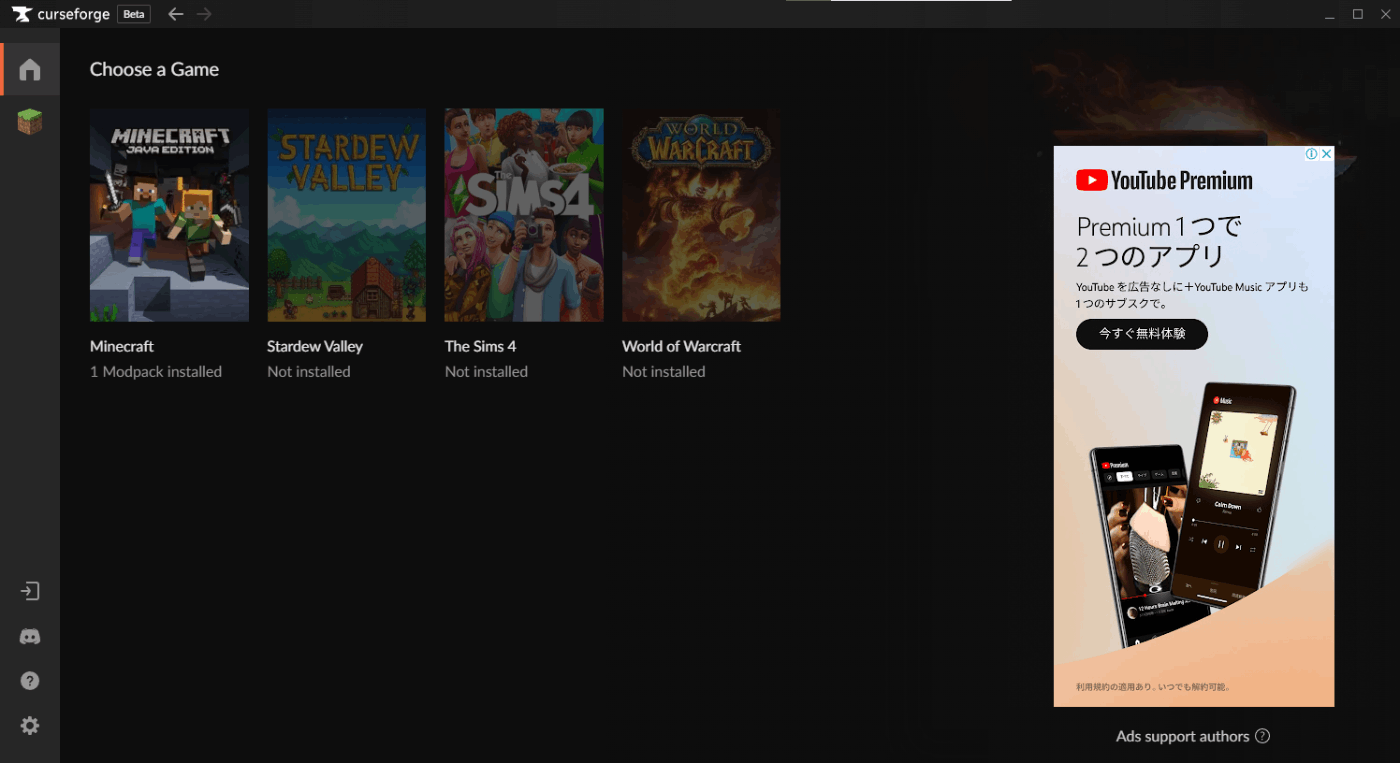 CurseForgeのダウンロード