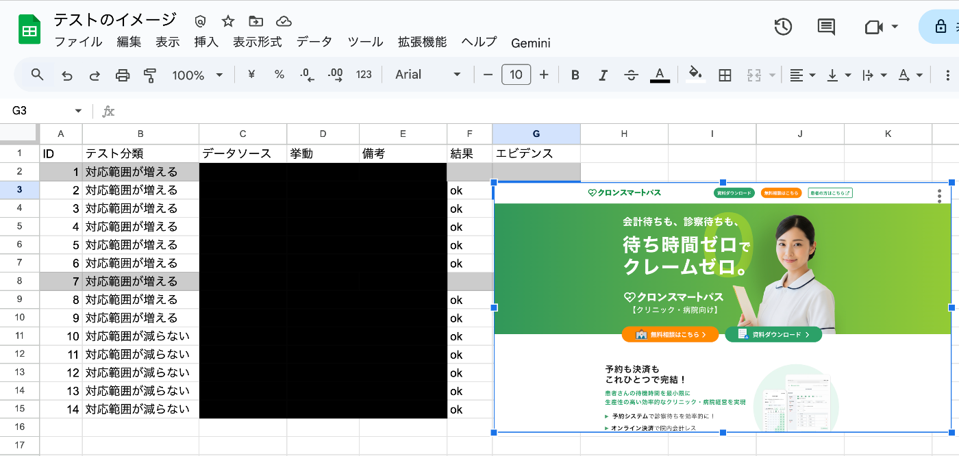 テストケース管理のスプレッドシートは直接埋め込みが多いので、少し困ります。