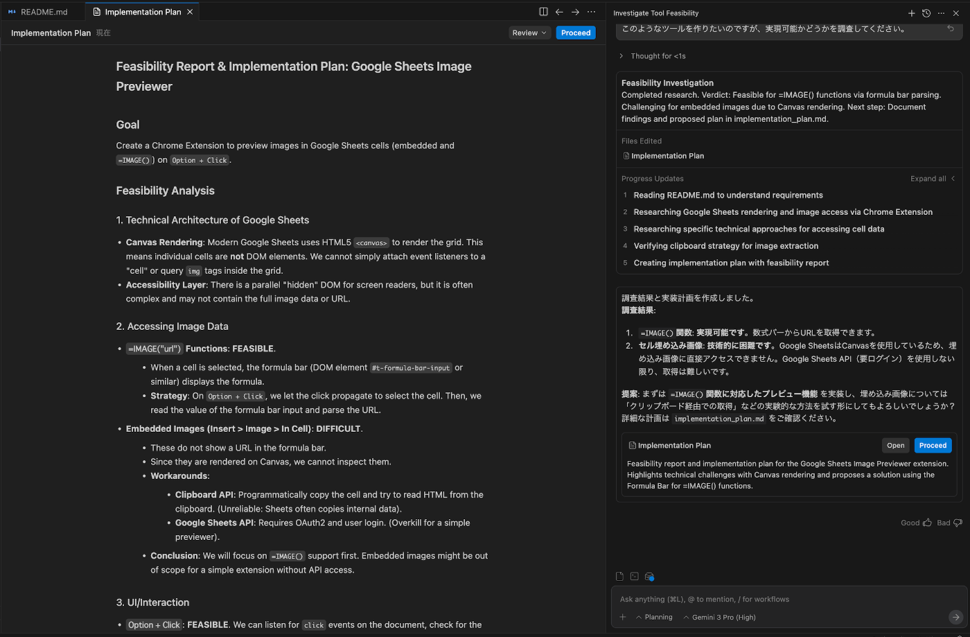 設計といっても、作りたいものをREADMEにまとめて、Gemini 3 Proに吟味してもらうだけです。