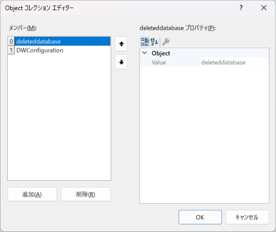 下記のように Object コレクションエディターが表示されますので、削除したデータベースの情報を削除します。