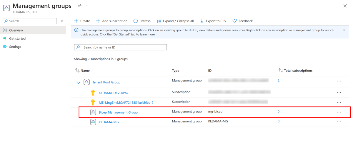 Azure portal を確認すると、確かに管理グループが作成されています。