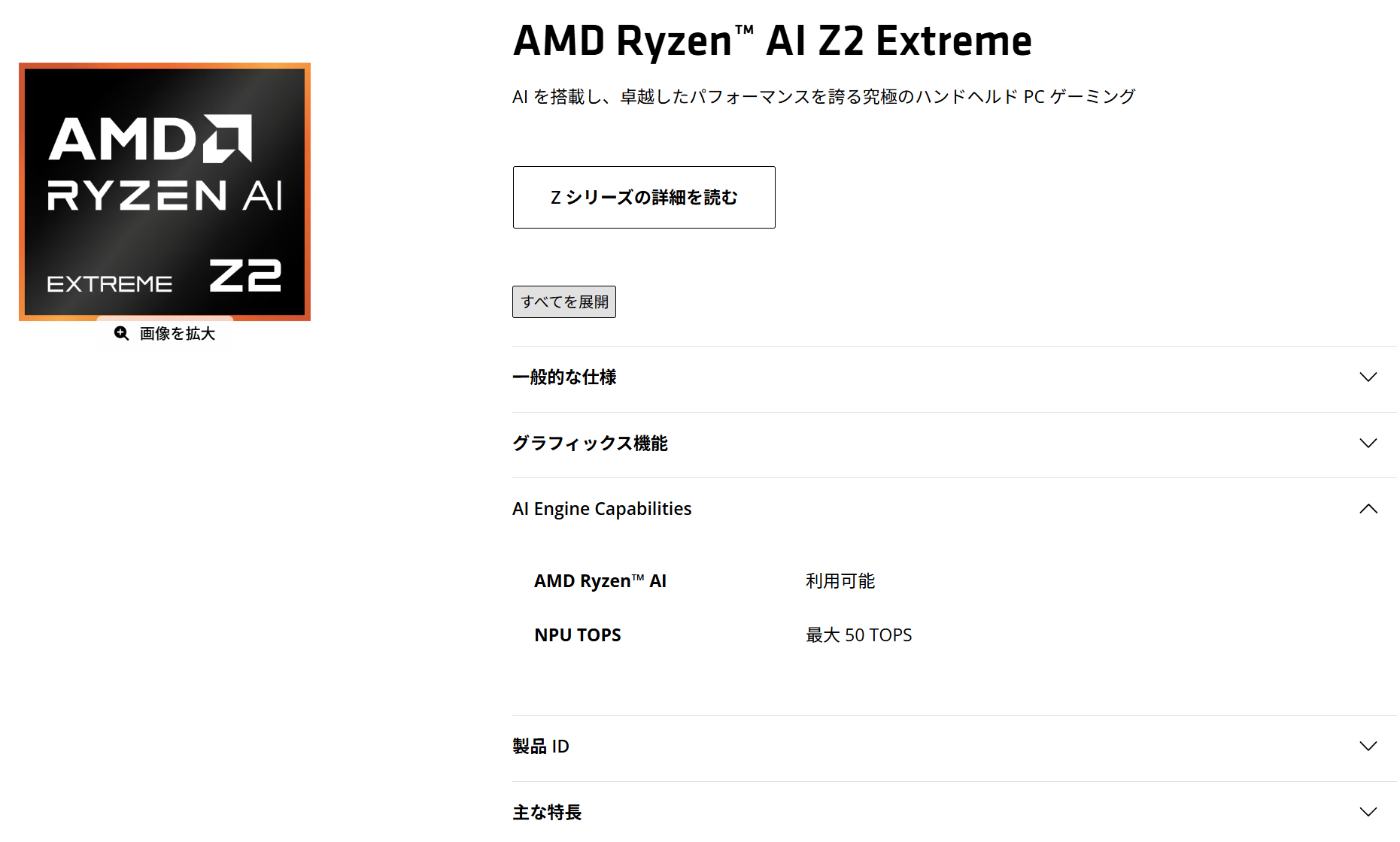 - https://www.amd.com/ja/products/processors/handhelds/ryzen-z-series/z2-series/ai-z2-extreme.html