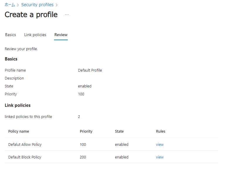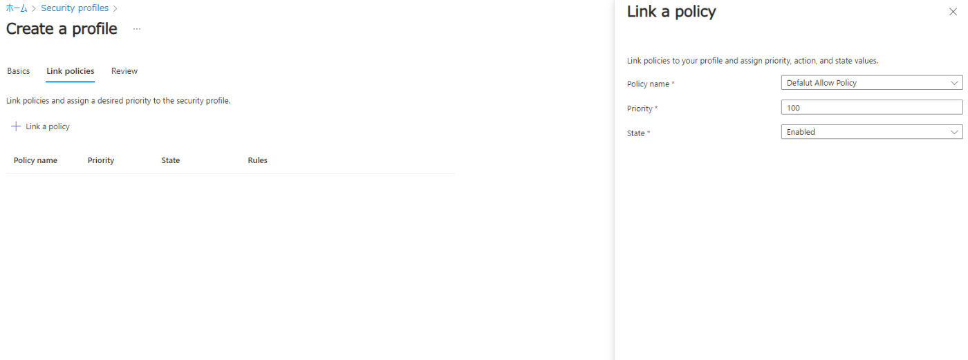 [+Create profile] から名前と Priority を指定して、次のページの [Link a policy] で先ほど作成したポリシーを紐づけします。